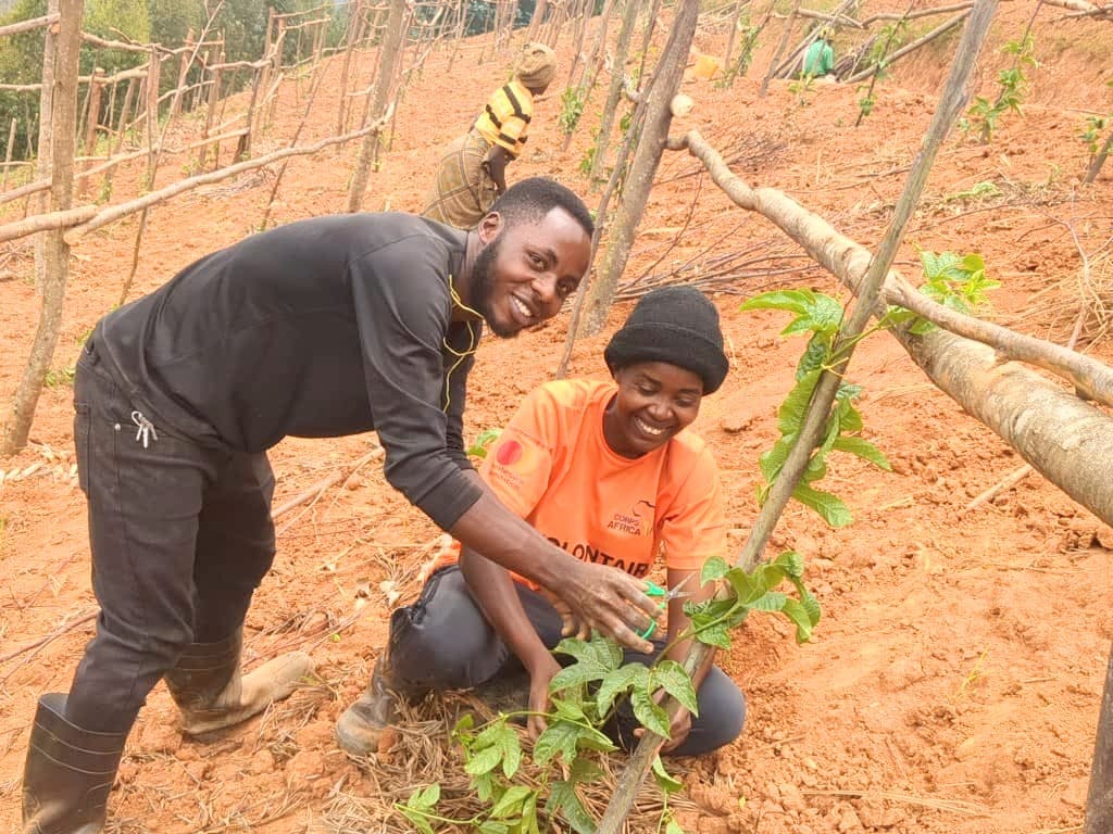 With a small spark of support from CorpsAfrica, that dream found its first roots. The youth group, TWUZUZANYE, received funds to prepare a single hectare of land. Not long after, fortune smiled again when SAIP stepped in, placing 1,200 passion fruit seedlings into the hands of hopeful farmers. That moment was a turning point. Suddenly, their vision was not just talk, it was alive in the earth.